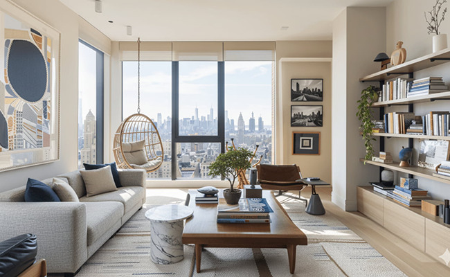 The reflective pavement adds a feeling of calm, while the colorful dots above bring playfulness and light to the overall composition. The combination of colors and textures creates an uplifting atmosphere, perfect for any space that needs a little burst of happiness.